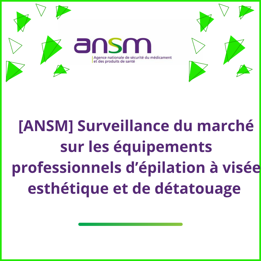 « Dans le cadre de ses activités de surveillance du marché des dispositifs médicaux, conformément aux articles L.5311-1 et L5311-2 du code de la santé publique, l’ANSM a effectué un contrôle du marché en décembre 2024 en France auprès de distributeurs et fabricants d’équipements/appareils professionnels d’épilation et/ou de dé-tatouage à visée esthétique, dispositifs de classe IIb selon le règlement 2017/745 relatif aux dispositifs médicaux (MDR). »