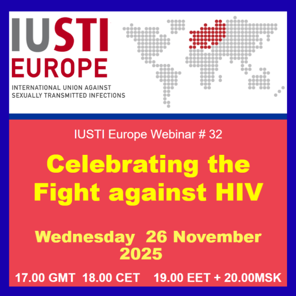 Next IUSTI-Europe Webinar Wednesday, November 26, 2025 17:00 GMT | 18:00 CET | 19:00 EET | 20:00 MSK Webinar 32: Celebrating the Fight against HIV HIV among STI patients:...