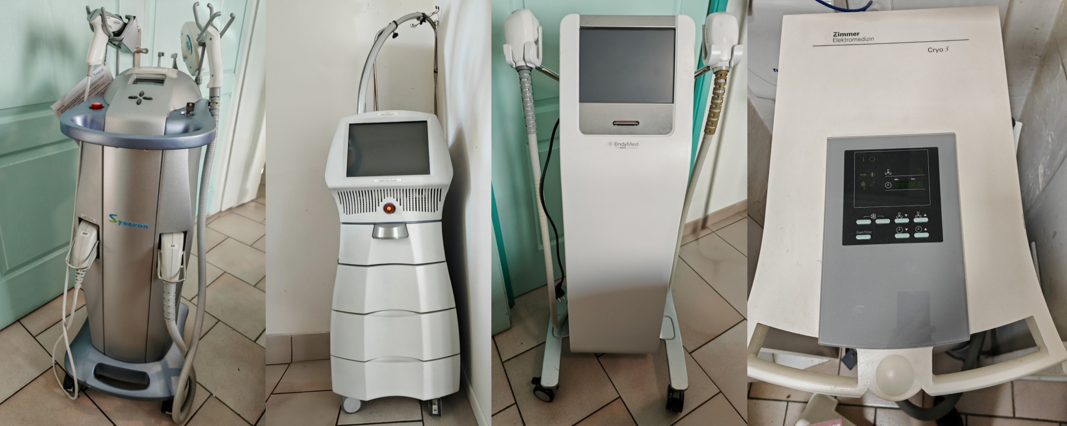 Cause retraite, plusieurs appareils proposés Performants et idéal "petit budget" Formation possible en "compagnonnage" au niveau du cabinet acquéreur eMAX Syneron, 2000€ j'utilise surtout la PAM SR (pigmentations), RFF subablative occasionnellement la ST (remise en tension). Je n’utilisait pas la DS (épilation) car j’avais un Lightsheer. FRAXEL SR 1500 2000€ ENDYMED 2000€ avec des tips de traitement pour la RFF (je n'ai pas acheté l'option micro-aiguille) ZIMMER pour refroidissement 2000€